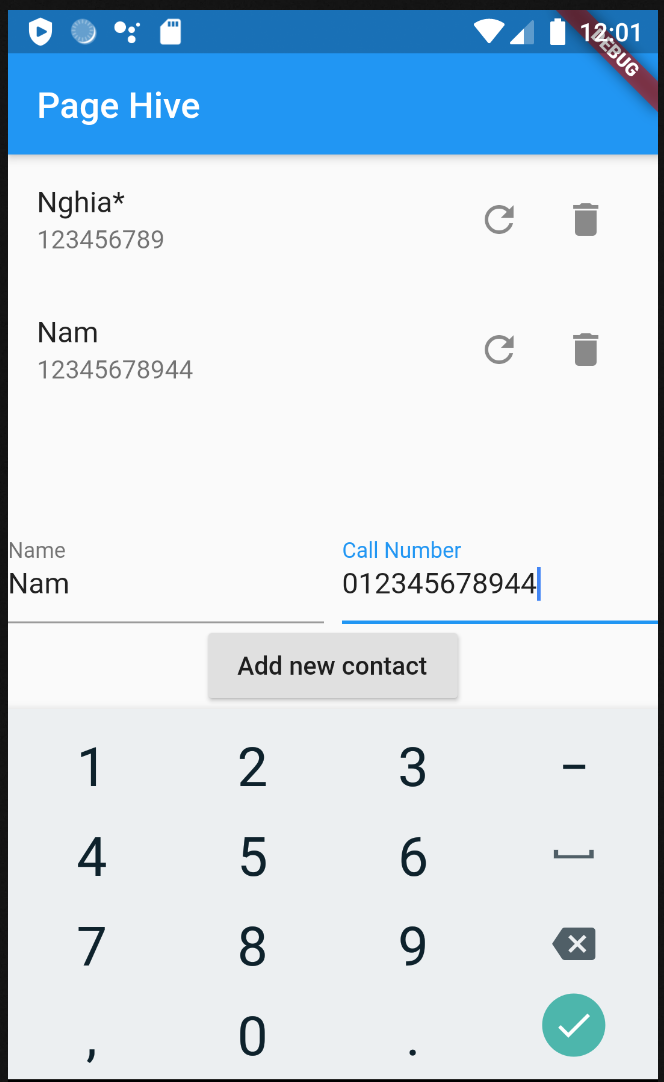Để thêm một liên hệ mới ta tạo thêm một Widgets new_contact_form.dart