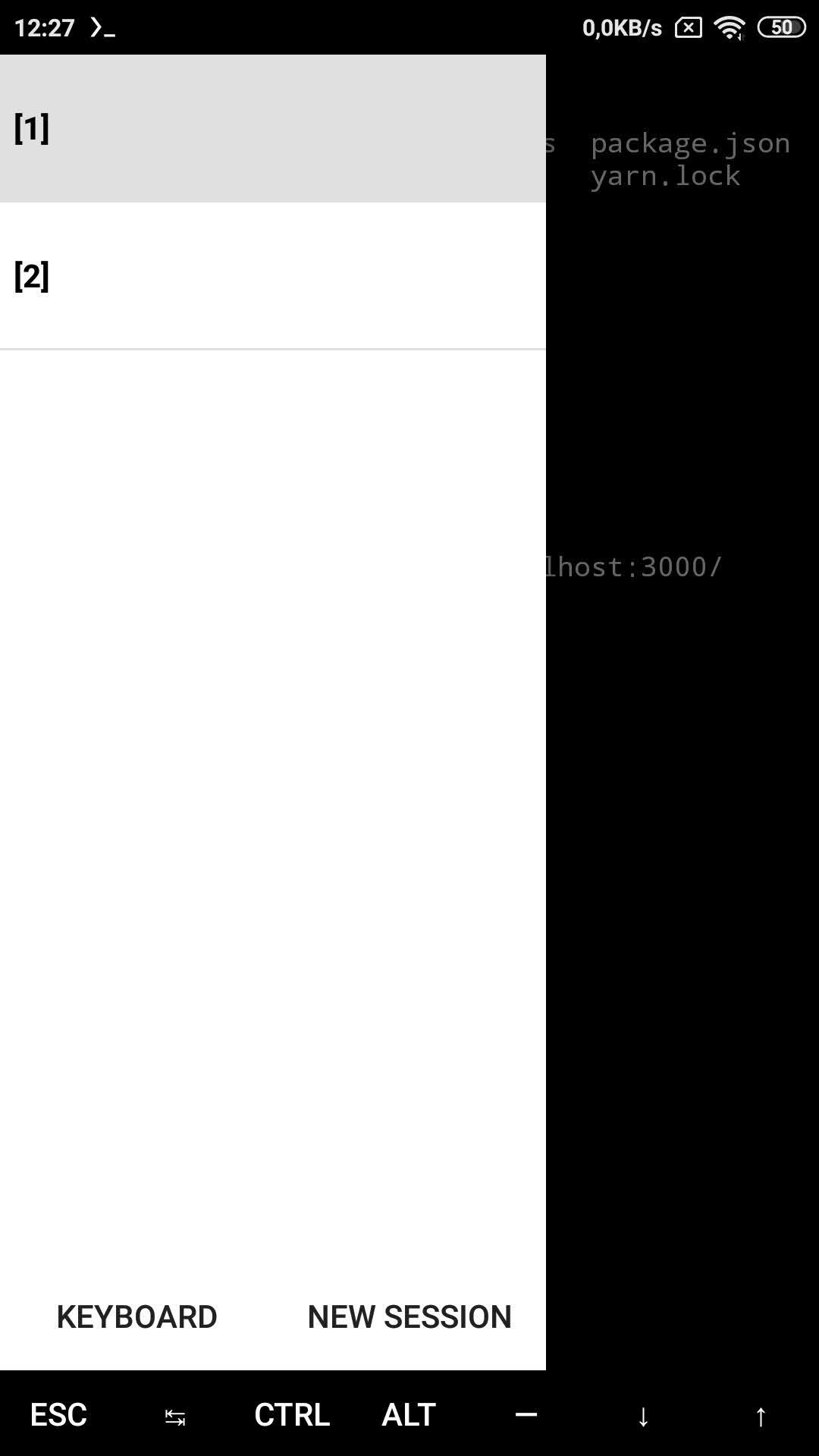 Các bạn mở tiếp một terminal mới trên điện thoại, bằng cách dùng tay kéo thanh bên phải và chọn New Session