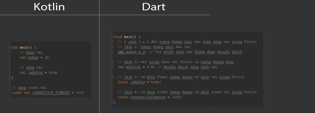 Học nhanh ngôn ngữ Dart (Flutter) nhờ ngôn ngữ Kotlin (Phần 1 / 5)