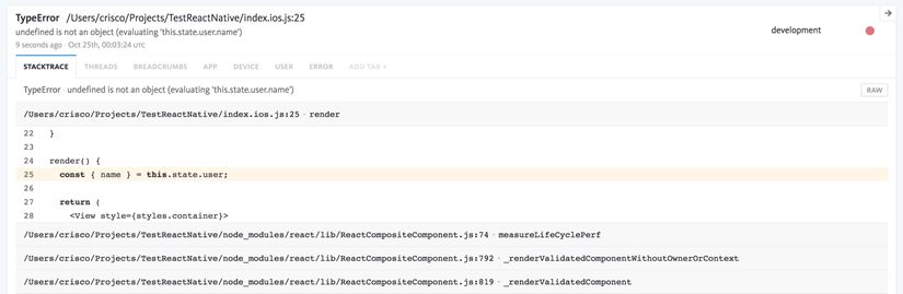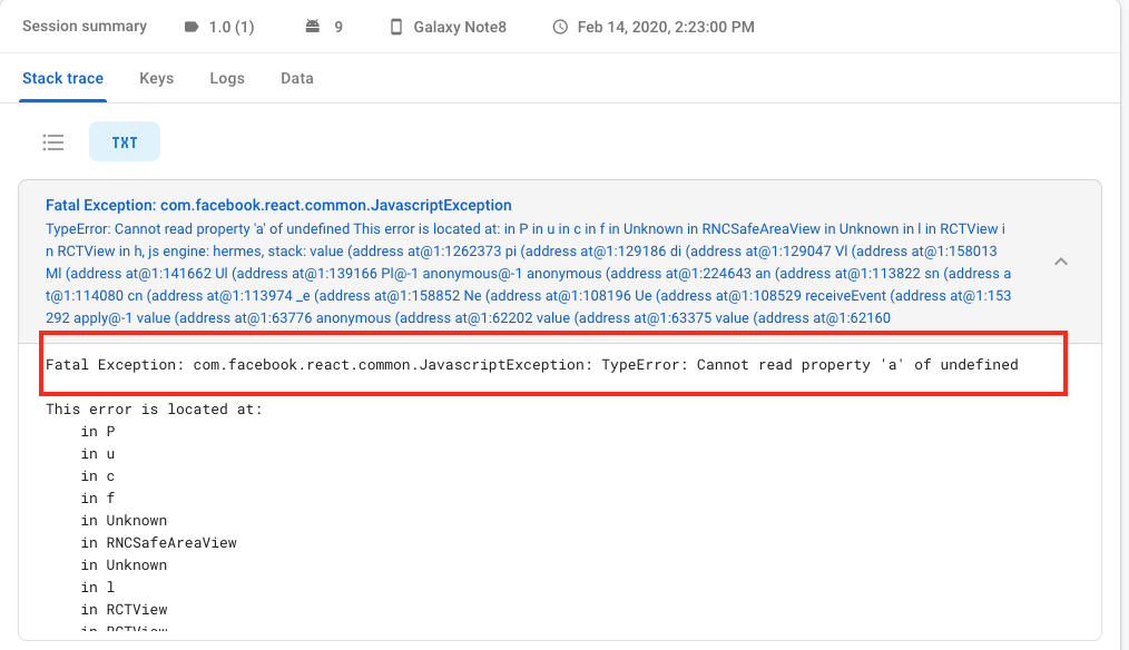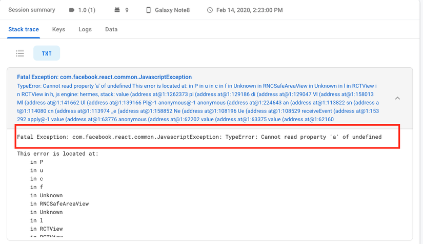 Nhưng React Native thì không được như vậy khi báo bug crash trên Javascript. Cho nên lúc này nếu có crash nào xảy ra trên production thì rất khó biết chỗ nào để fix dòng code đó. Hiện nay theo như tôi biết chỉ có Bugsnag (https://www.bugsnag.com/platforms/react-native-error-reporting) báo được dòng code nào bị crash và nhiều công ty lớn sử nhưng phí dịch vụ lại khá đắt đối với nhà phát triển cá nhân hay công ty nhỏ.