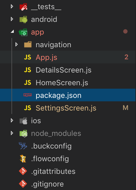Tương tự như vậy chúng ta sẽ tạo DetailsScreen.js và SettingsScreen.js