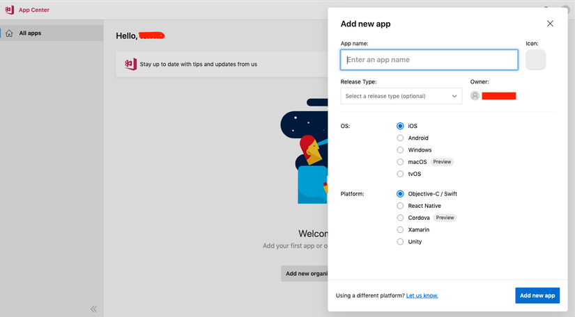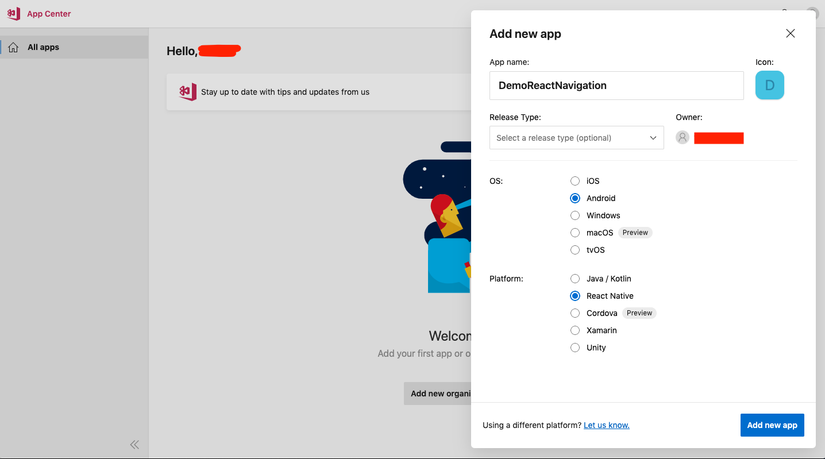 Do CodePush là 1 chức năng của AppCenter nên bài viết này tôi sẽ hướng dẫn cho bạn cả 2 luôn nhé.