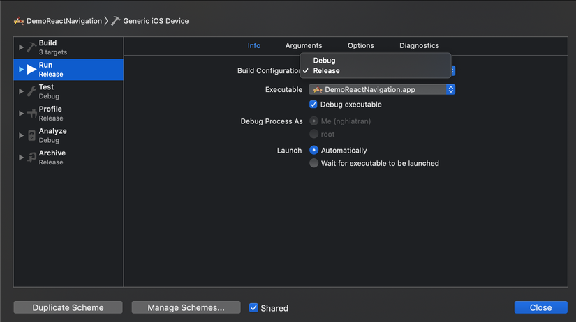 Các bạn cấu hình lại Xcode như sau để build release cho iOS: