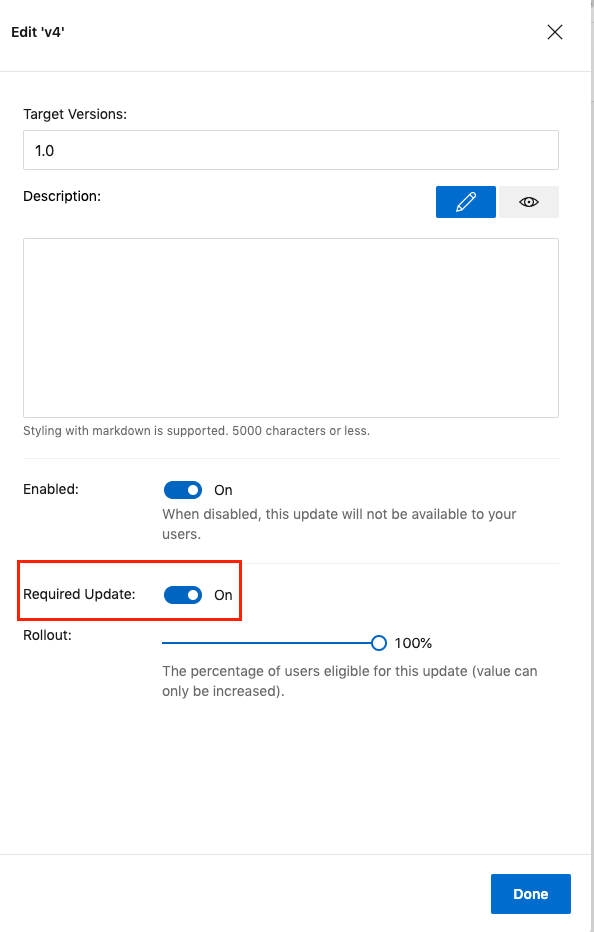 DemoReactNavigation/Distribute/CodePush/{version}để bật Required Updatenhé![]()