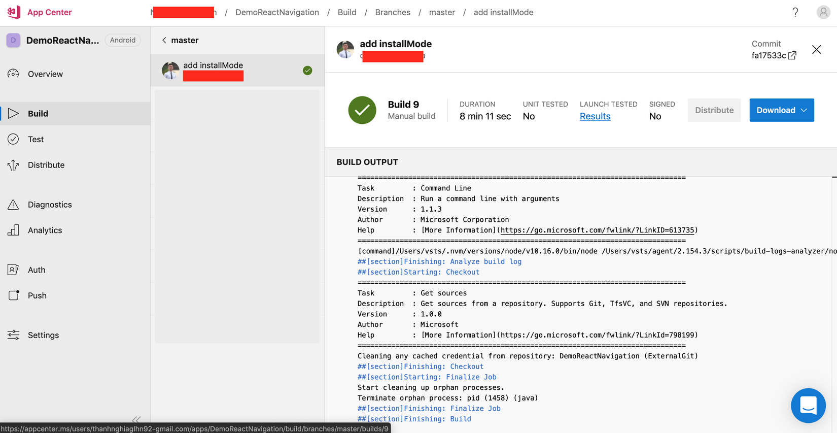 Okay nếu như bạn xem xong thì chắc Appcenter cũng đã build hoàn tất. Kết quả trông sẽ như sau. Bạn ấn Download để tải apk về nhé.