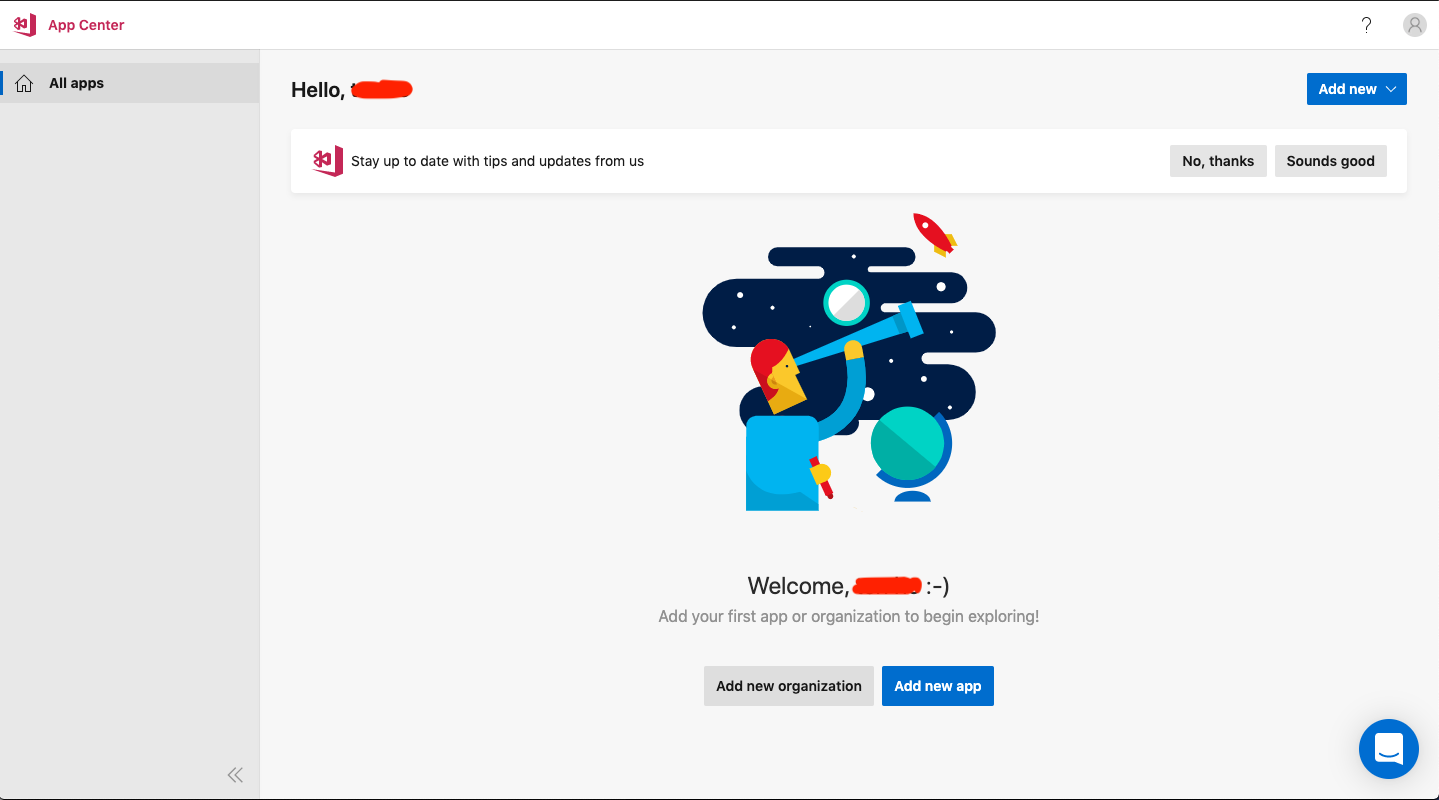 Các bạn lên trang https://appcenter.ms/ để đăng ký tài khoản nhé