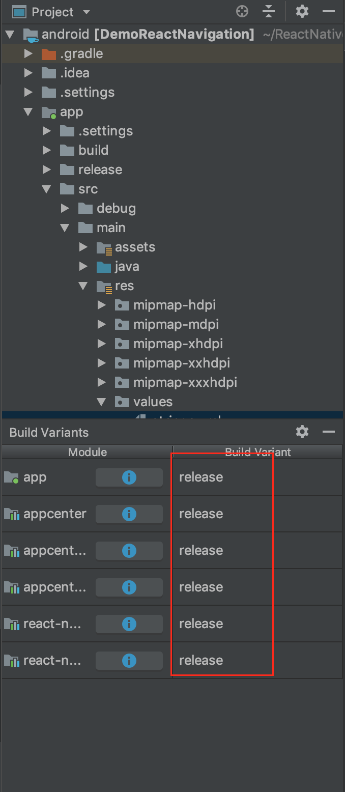 - Bước 7: Các bạn chọn chế độ Build Variant là release nhé