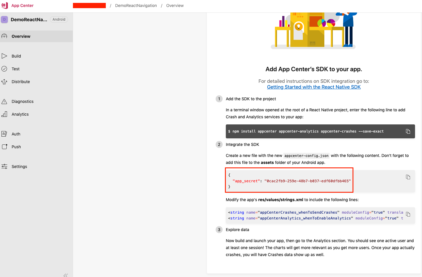 Các bạn có thể xem chi tiết trong https://github.com/microsoft/appcenter-sdk-react-native