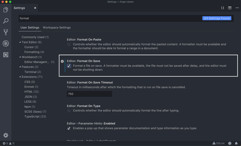 - ESLinthttps://marketplace.visualstudio.com/items?itemName=dbaeumer.vscode-eslint