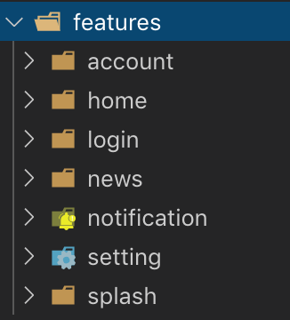 featuresđể chứa các chức năng chính dự án