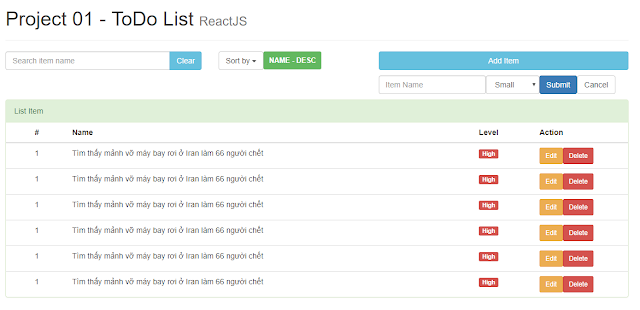 Xin chào các bạn, trong phần 1 của bài Học React thông qua ví dụ phần 1 chúng ta đã cùng nhau đi tạo giao diện sau đó phân chia giao diện thành các component. Hôm nay chúng ta sẽ tiếp tục đi hoàn thành các công việc tiếp theo là tạo mock data và render Item. Các bạn có thể tham khảo bài viết trước của mình theo link sau : PHẦN 1. Dưới đây là nội dung chính của bài viết.