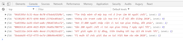 Nếu ngon nghẻ và suôn sẻ không thấy có lỗi gì cả ở trong tab Console thì chúng ta đã in được các dữ liệu ở trong mockdata ra ngoài thành công. Đây là kết quả của chúng ta sau một hồi vất vả.