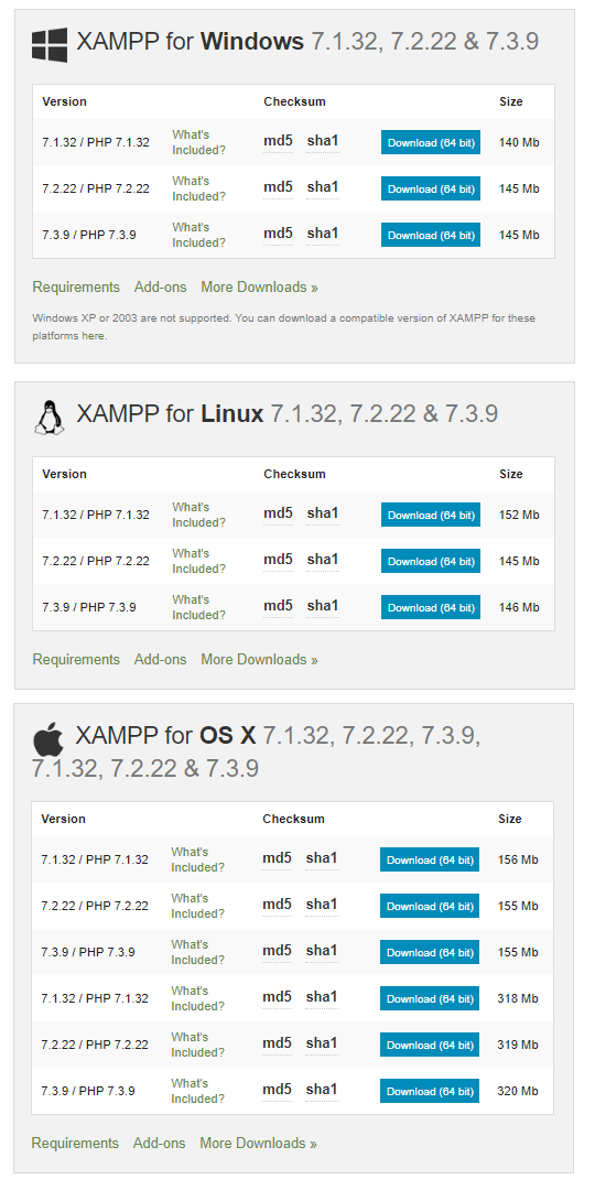 - Tải xampp để có một máy chủ ảo tại đây