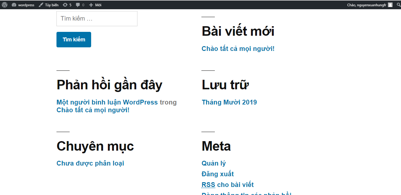 - Trong phần này mình sẽ giới thiệu các chức năng chính trong WordPress bao gồm: trang chủ và trang admin