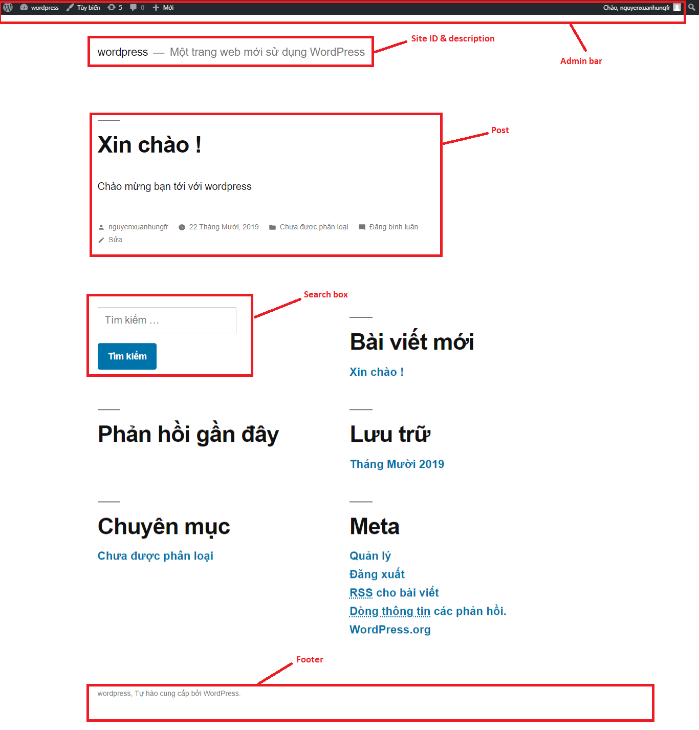 - nội dung chính: hiển thị bài post khi chúng được đăng lên website thì phần này sẽ xuất hiện trên trang chủ hoặc trang chuyên mục