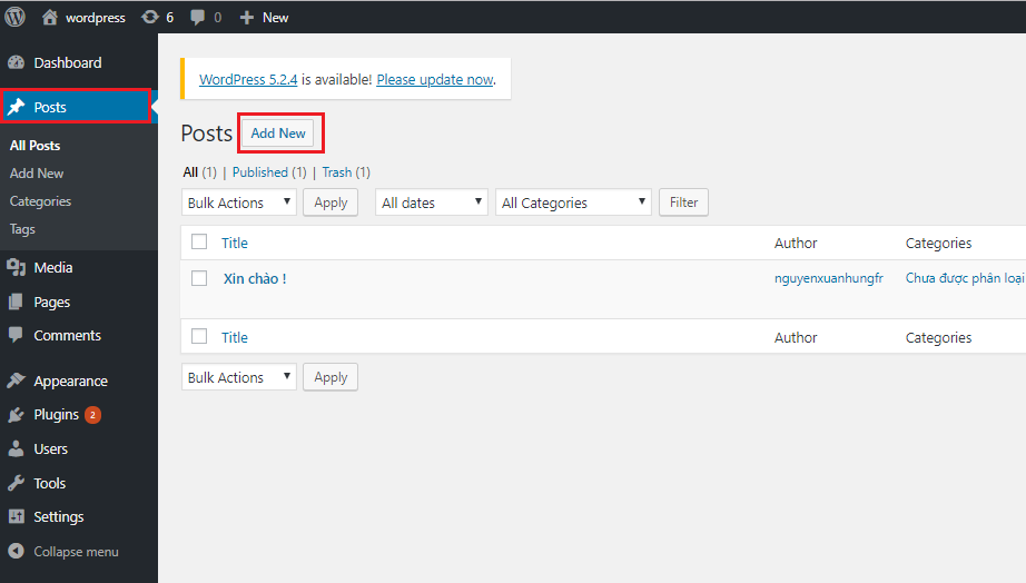 3. Cách post bài trong WordPress