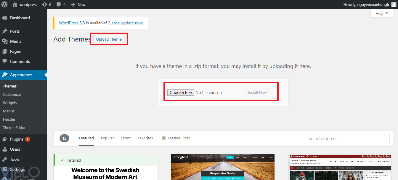 Để cài theme bằng upload theme từ máy tính của bạn: