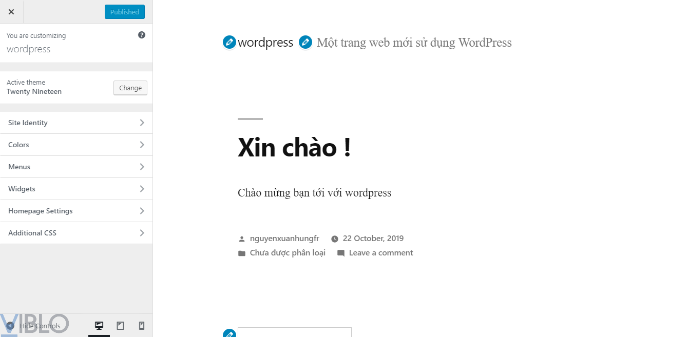 - Site Indentity: cho phép bạn tải lên logo tùy chỉnh, thay đổi tiêu đề của trang web và chỉnh sửa logo được sử dụng ở chân trang.