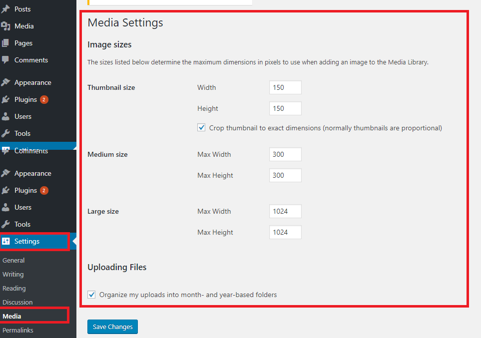 - Organize my uploads into month- and year-based folders: Tự động đưa các tập tin được upload lên vào thư mục với cấu trúc ngày tháng so với thời gian upload.