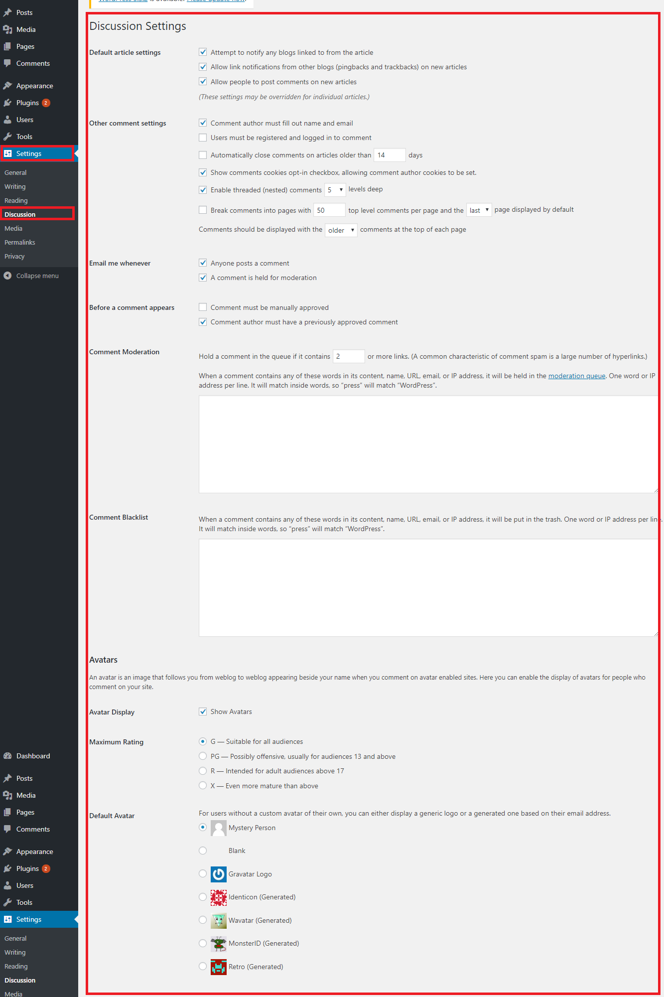 - Comment Blacklist: có thể nhập các từ khóa spam như url, email,... sau đó lọc bình luận