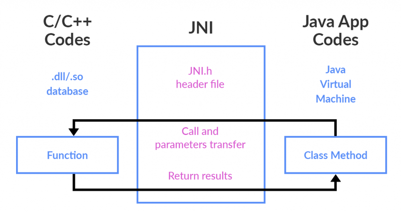 Để liên kết được phần code Native và phần code còn lại cần có một thành phần chuyên biệt. Mình không biết với các ngôn ngữ khác thì thành phần này là gì, vì mình không phải lập trình viên Android, chủ yếu mình tìm hiểu về Java để hiểu cách ứng dụng Android hoạt động thôi. Với Java thì thành phần này được gọi là JNI - Java Native Interface.