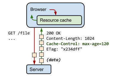 Với vấn đề tối ưu hóa hiệu năng, request tốt nhất là một request không cần liên lạc với server, một local copy của response cho phép loại bỏ tất cả các độ trễ của mạng, tránh phí dữ liệu cho việc truyền dữ liệu. Để đạt được điều này, HTTP cho phép server trả về Cache-Control để control như thế nào, trong bao lâu và Browser và các bộ đệm trung gian khác có thể lưu trữ phản hồi riêng lẻ.