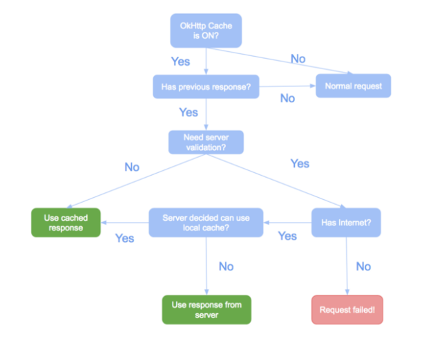 Đây là sơ đồ cách hoạt động của OkHttp Cache.