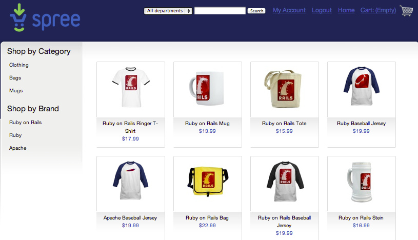Spree is most popular Platform on Ruby that is a easy to use and elegantly designed software. It ensures greater flexibility in managing your store and is a visual treat. It includes a wide variety of features including mail marketing and CRM tools.