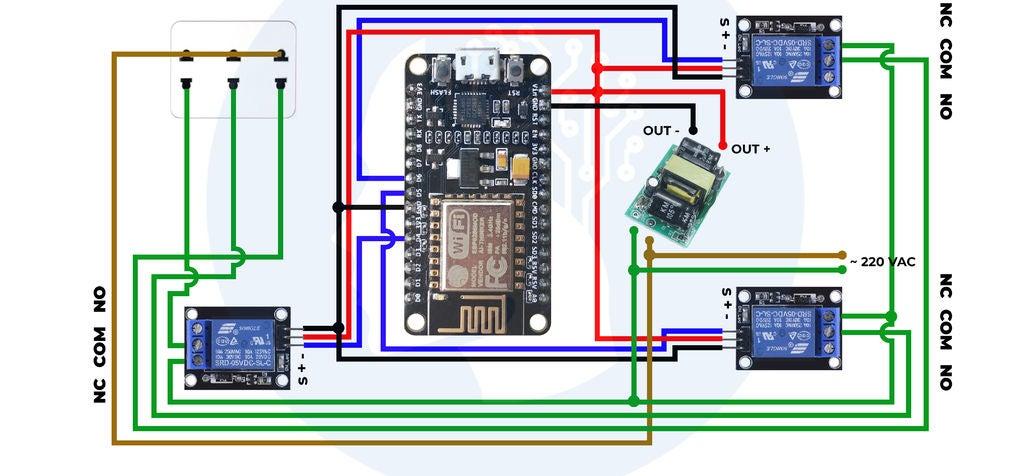 Things used in this project Hardware components NodeMCU V1.0 × 1 Relay 1 Module × 3 AC-DC 5V 700 mA × 1 Software apps and online services Coorin Assistant Hand tools and fabrication machines Soldering iron (generic) Solder Wire, Lead Free Multitool, Screwdriver Mini Side Cutter, 120mm Length with 25mm Jaw Capacity