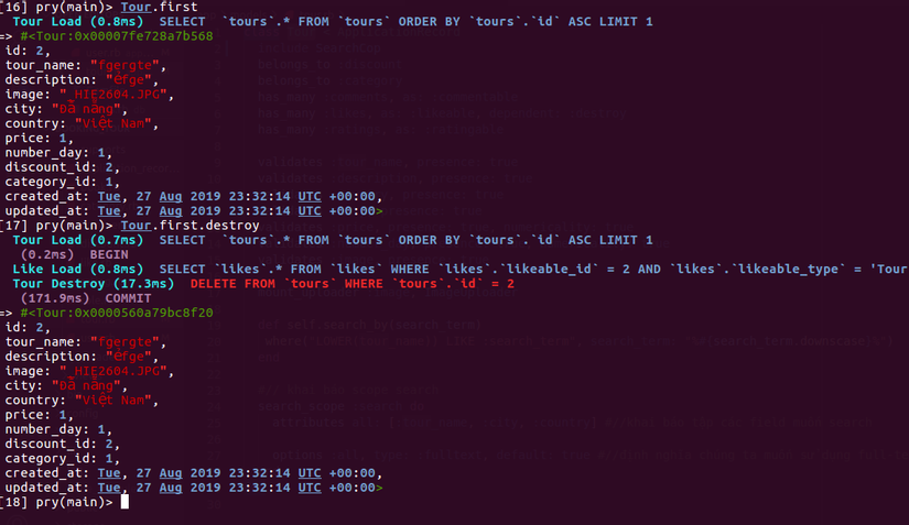 Chúng ta sẽ tìm hiểu cách sử dụng rails console để test về validate, associations.