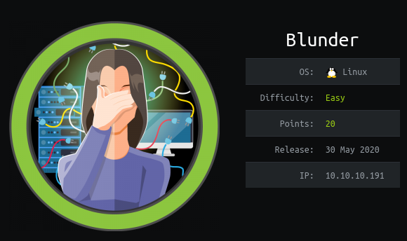 Blunder là một machine được đánh giá easy, tại thời điểm mình làm bài thì nó đã ra được 58 ngày. Với base là Linux thì mình cũng quen thuộc hơn.