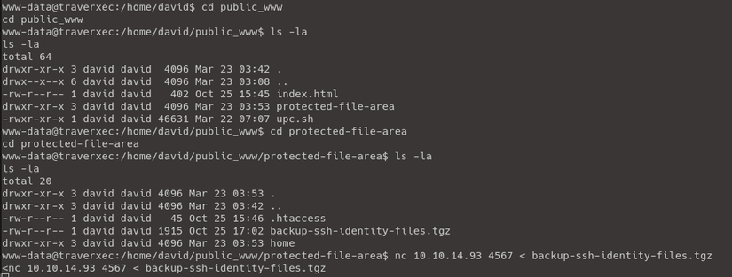 Tại đây có một thư mục protected-file-area, sau khi liệt kê files chúng ta thấy có 1 file backup ssh, khá quan trọng vì Machine chỉ mở thêm port 22: backup-ssh-identity-files.tgz. Chúng ta chuyển file đó về localhost: