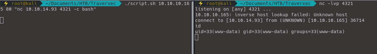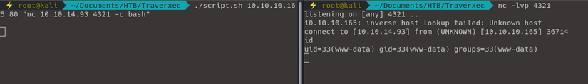 Metasploit đã có sẵn module để khai thác, tuy nhiên chúng ta sẽ hạn chế dùng nó, mà sẽ dùng script có sẵn của CVE trên. Tại đây ta mở một reverse shell.