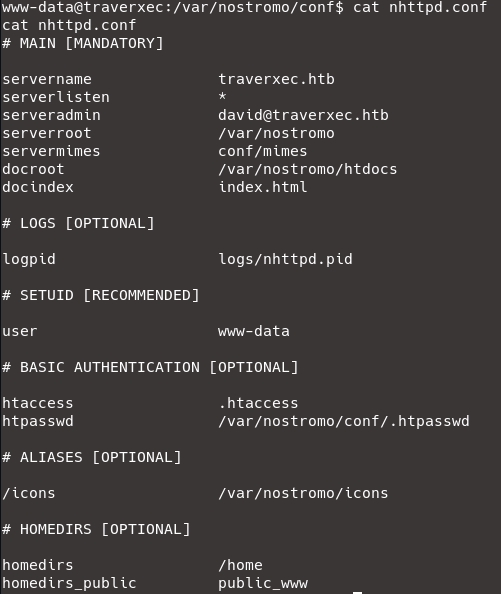Sau khi decrypt thì giá trị của nó là Nowonly4me. Nhưng không thể dùng ssh tới hay swtich user. Tuy nhiên hãy truy cập vào đường dẫn của file kia xem sao? Tại: /var/nostromo/conf/