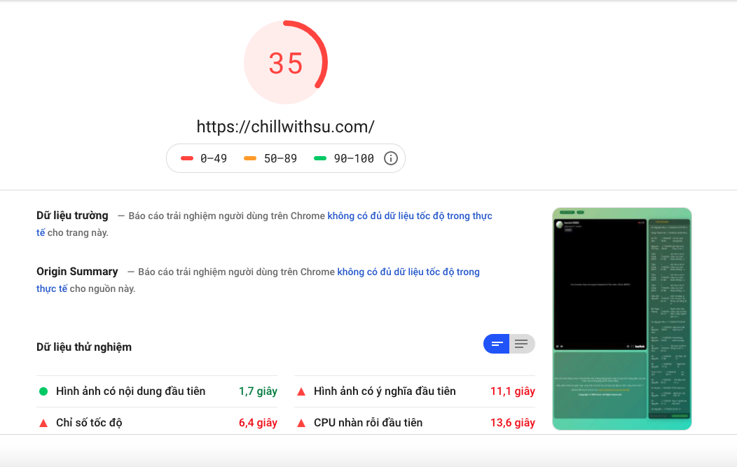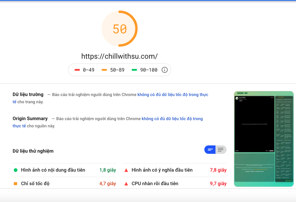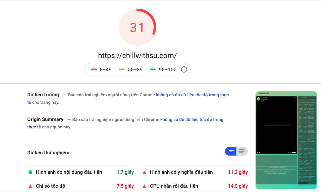 Sử dụng công cụ đo tốc độ Page Speed kết quả như sau