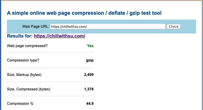 Sau khi bỏ comment các config đi thì kết quả test khá ấn tượng. Mình test việc cấu hình bằng cách sử dụng công cụ kiểm tra gzip oneline kết quả thu được như sau.
