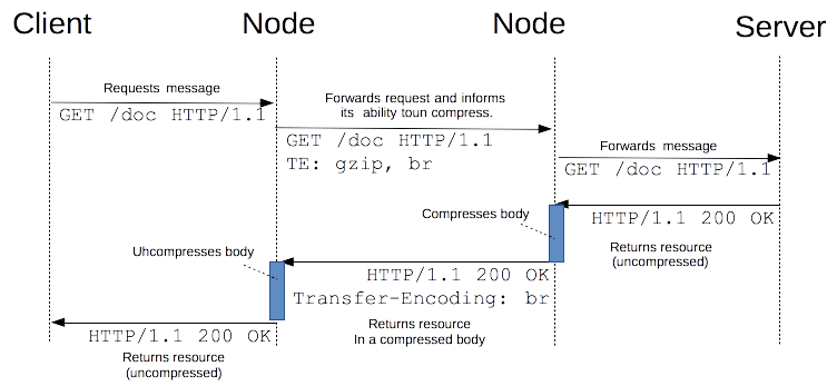 Giữa các node này cũng nói chuyện với nhau bằng cách TE và Transfer-Encoding về các thuật toán mã hoá.