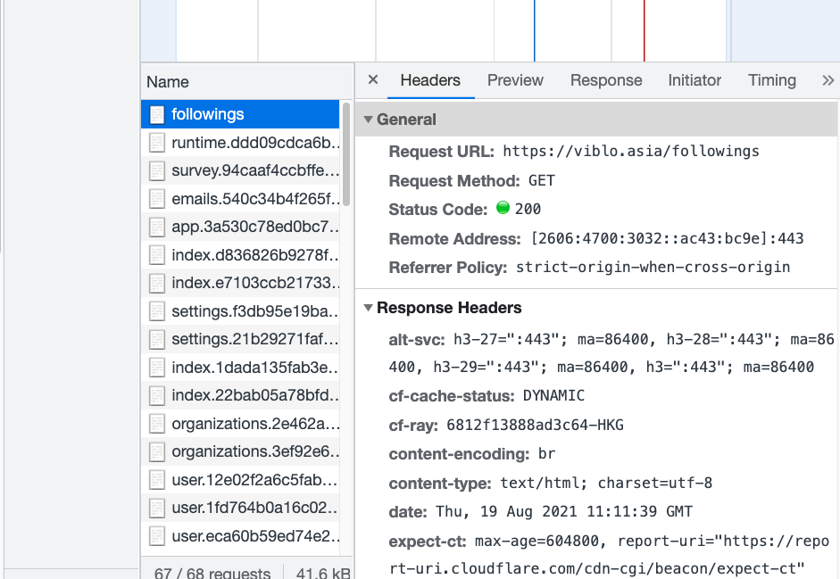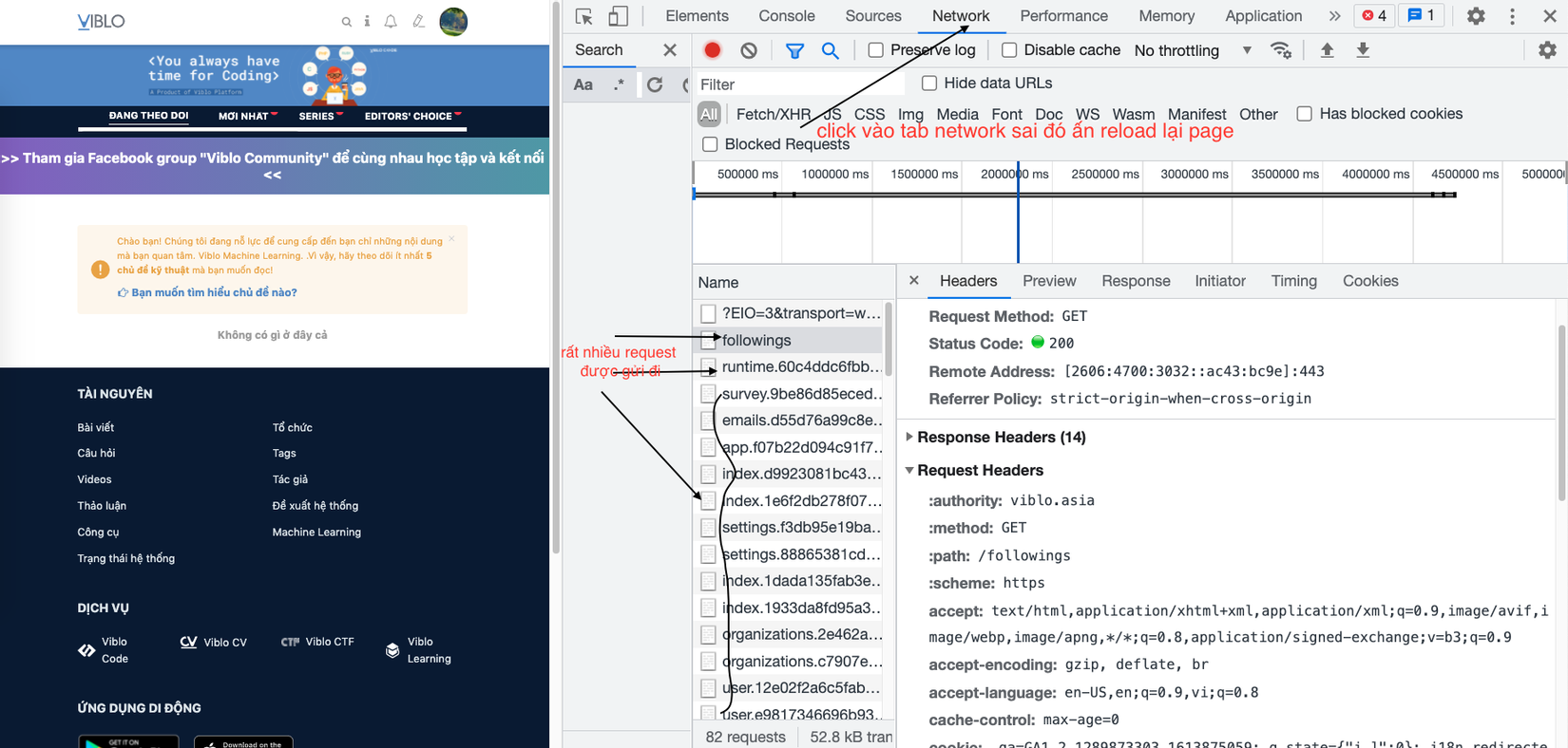 - Request Url : https://viblo.asia/followings cái này là yêu cầu mình vừa gửi ( chính là cái chúng ta gõ)
