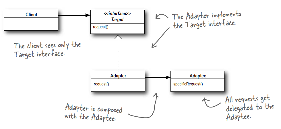 - Adapter lần lượt triển khai các methods của client interface, làm những công việc như chuyển đổi data trước khi điều hướng các trách nhiệm cho lớp adaptee thực sự xử lý.