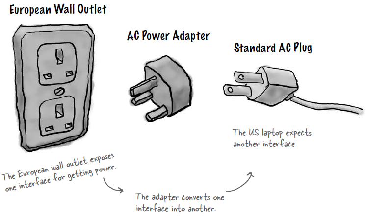 Adapter trong lập trình hướng đối tượng cũng có chức năng tương tự như thế giới thực: Nó nhận 1 interface và thích ứng để trở thành 1 interface client cần sử dụng.