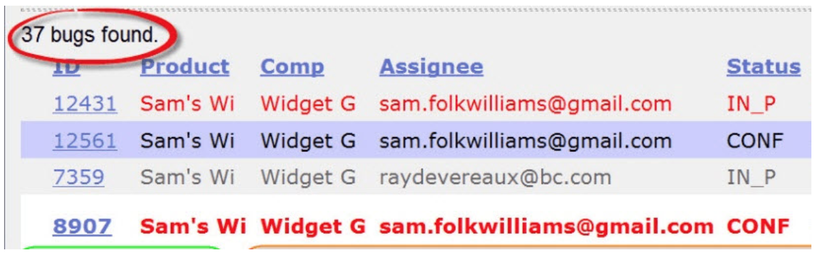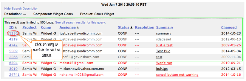 Khi bạn bấm vào từng thành phần, nó sẽ mở một cửa sổ khác. Tất cả các lỗi được tạo ra theo loại cụ thể sẽ được liệt kê ở đây. Từ danh sách lỗi đó, chọn ID # bug của bạn để xem thêm chi tiết về lỗi.