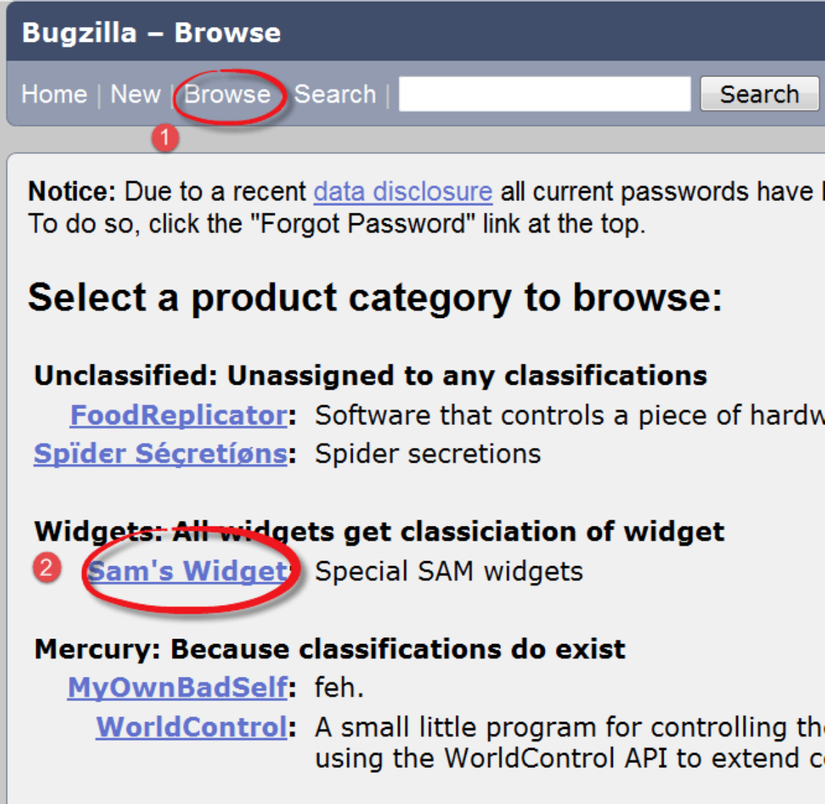 - Chọn sản phẩm "Sam's Widget" vì như vậy bạn đã tạo ra một bug bên trong nó