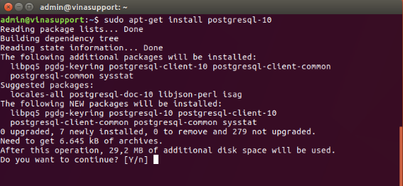 Bước 3: Cập nhật lại danh sách Packages của Ubuntu và cài đặt PostgreSQL 10/11 hoặc 12 bằng command bên dưới.