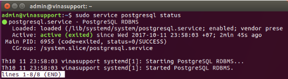 Bước 4: Xác nhận PostgreSQL đã được cài đặt thành công, sử dụng command sau đây: