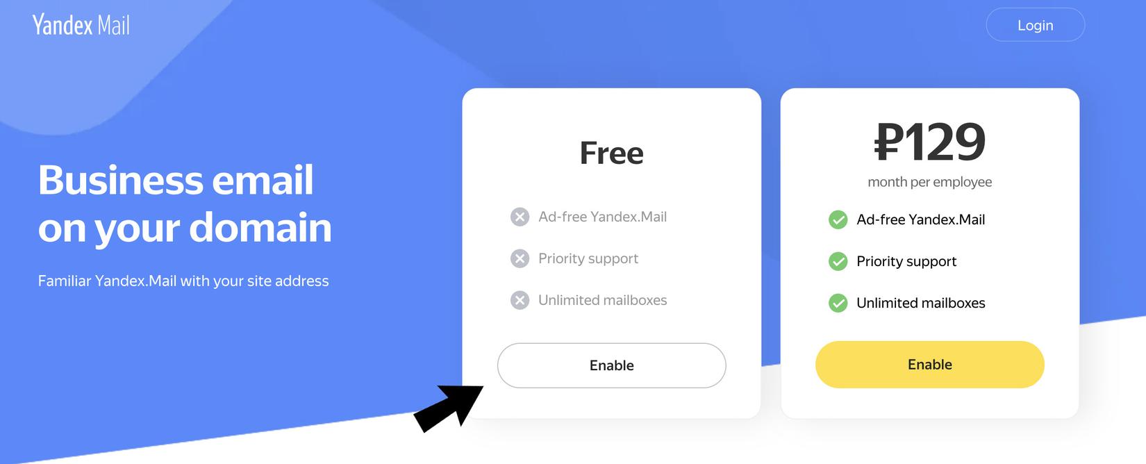 Tiếp theo :mọi người chọn ‘Enable‘ tại cột ‘Free‘ . Yandex sẽ tự động chuyển hướng mọi người tới trang ‘Welcome’ như hình dưới :