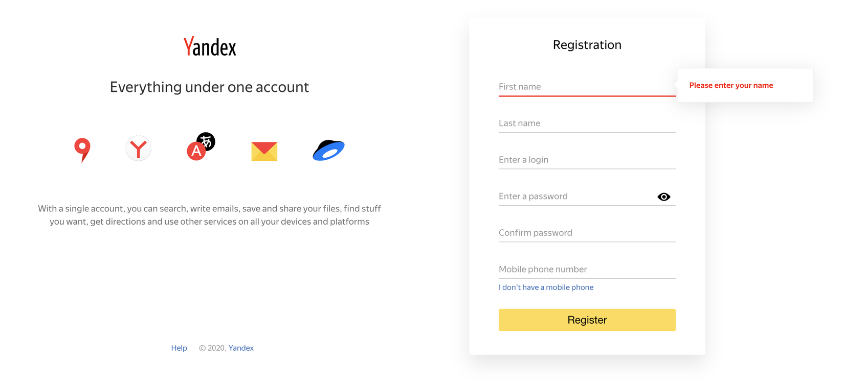 Link đăng ký tài khoản Yandex :https://passport.yandex.com/registration