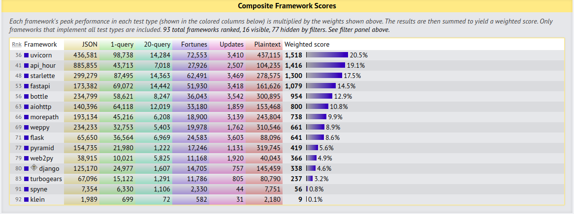 Các bạn có thể test hiệu năng của các web framework trên trang này (https://www.techempower.com/benchmarks/)