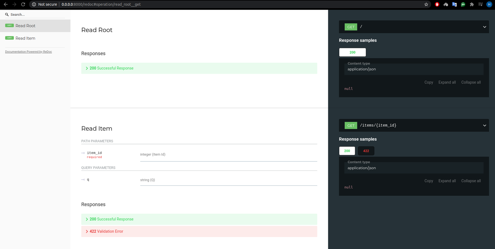 1 giao diện khác của FastAPI docs http://0.0.0.0:8000/redoc.