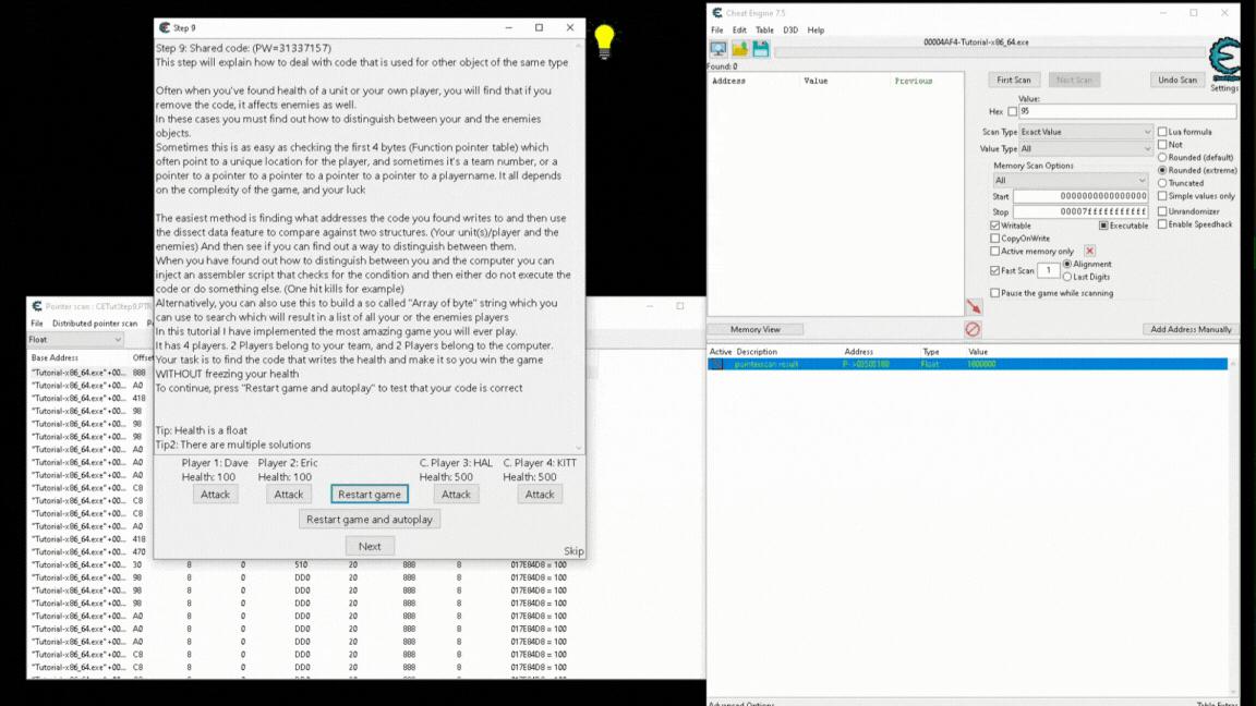Vậy là chúng ta đã đi hết 9 challenge trong CE tutorial. Những ví dụ trong các step của tutorial này đều chỉ nhằm mục đích demo, giải thích các tính năng của CE nên ở mức rất đơn giản, khi bạn sử dụng CE với các game thực tế chắc chắn sẽ gặp rất nhiều những trường hợp khác không giống với tutorial này. Việc này là bình thường vì mỗi video game sẽ sử dụng các công nghệ khác nhau, mức độ quan tâm đến bảo mật của mỗi game cũng khác nhau.