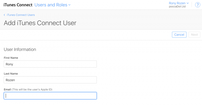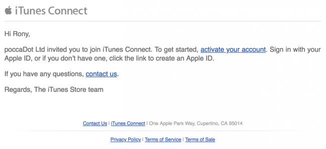iTunes Connect hiện gửi lời mời đến user mới, trước tiên user cần xác minh địa chỉ email của mình trước khi tài khoản sẽ hiển thị trong iTunes Connect.
